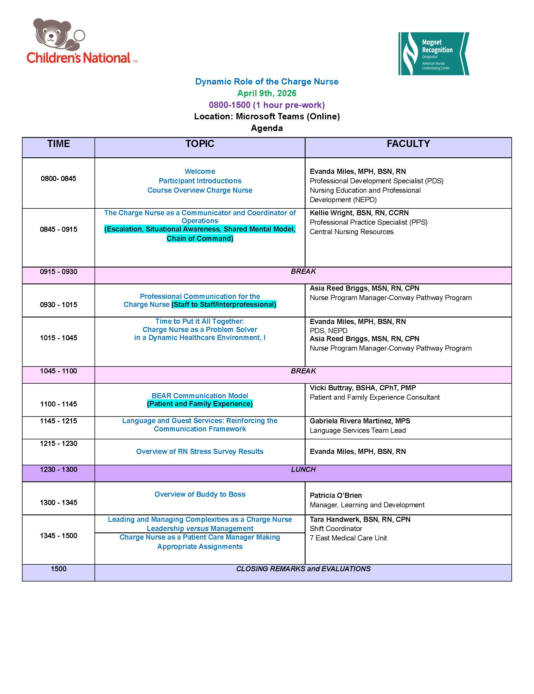 Charge Nurse Workshop 4/9/2026
