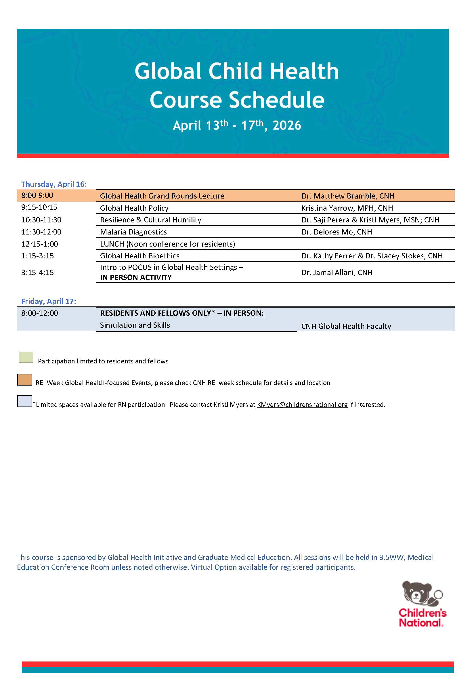 Nurses: Children’s National Hospital designates this activity for a maximum of X.X LIVE ANCC contact hours.
