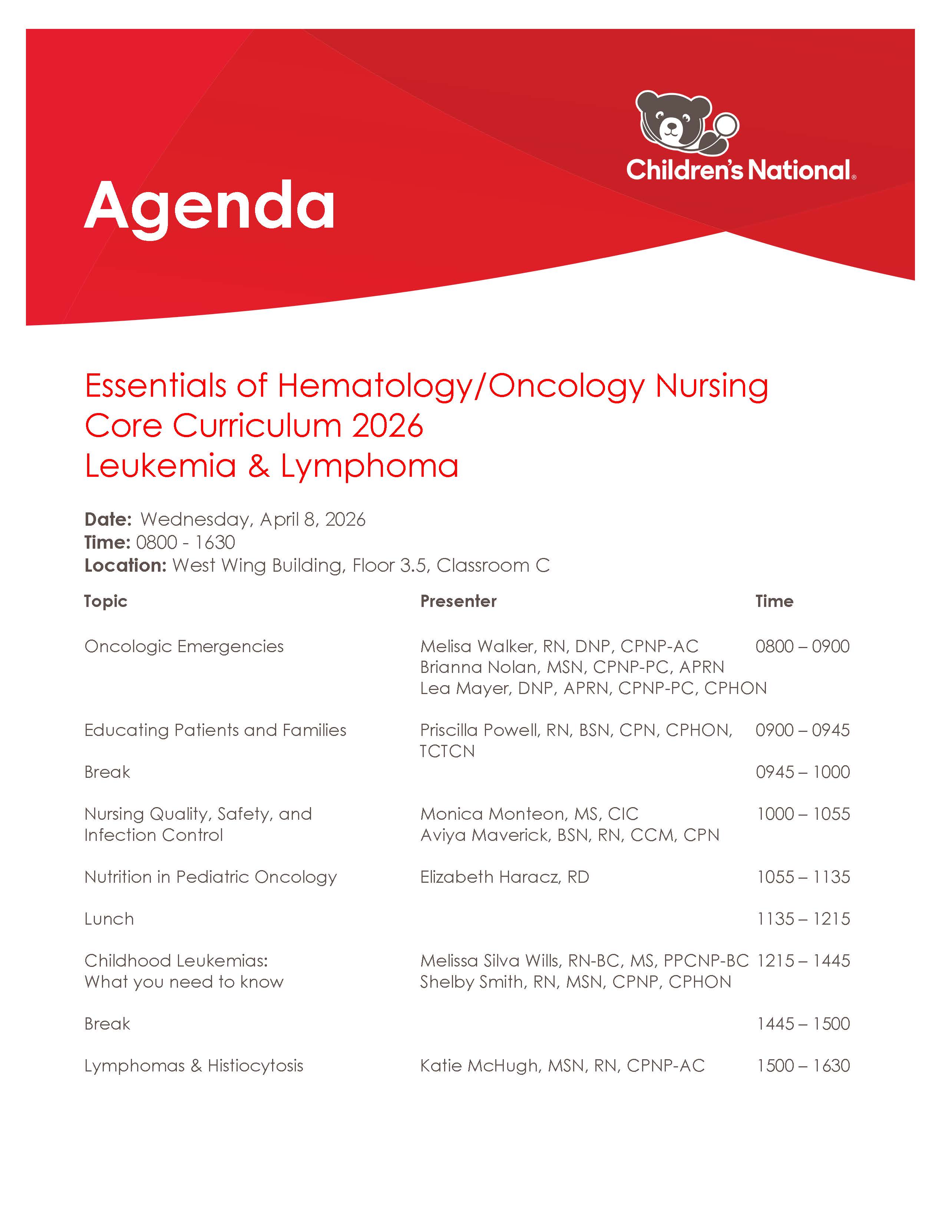 - 7.25 ANCCChildren’s National Hospital will provide 7.25 Nursing Contact Hours for this Live activity.