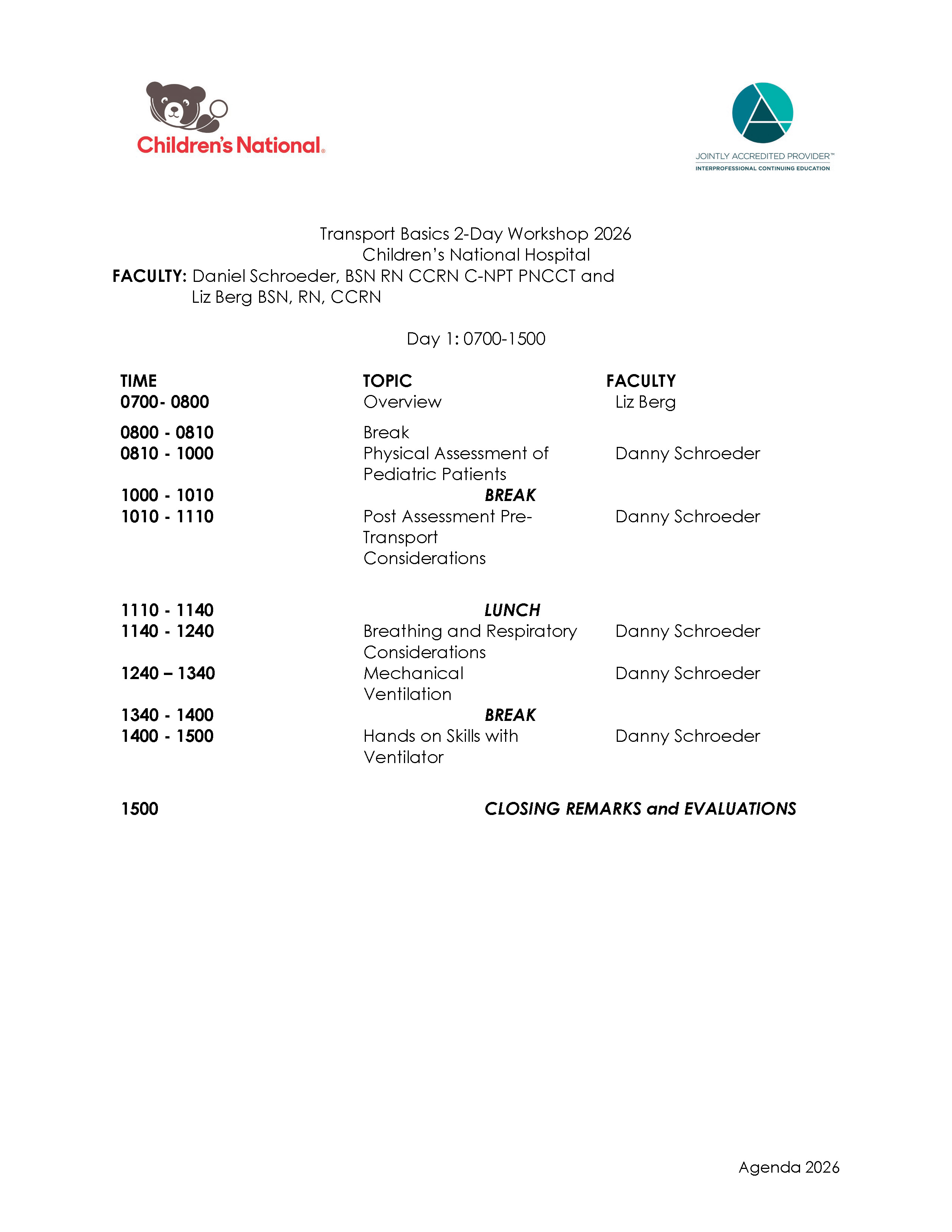 This two-day course builds the knowledge and skills needed to safely assess, manage, and transport critically ill pediatric patients. Participants will review transport-specific safety, legal, and clinical considerations while strengthening assessment and decision-making skills for respiratory, airway, circulatory, neurological, and multisystem emergencies. The course emphasizes practical application in the clinical setting to improve patient safety and outcomes.
